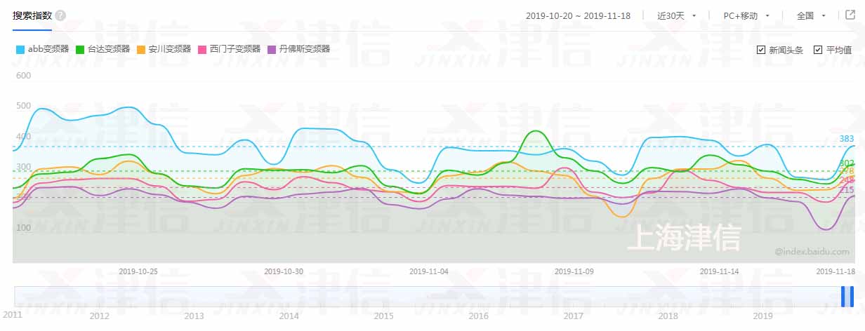 但是,随着互联网大数据的快速发展。使得向日葵视频app官网可以从另一个维度来来了解最被消费者关注的变频器品牌。百度目前是国内用户使用频率最高的搜索引擎,百度搜索指数则从相当程度上代表了当前在互联网上大家最关注的热点。把各家变频器厂商输入百度指数,向日葵视频app官网可以发现,当前在互联网上热度最高的十大变频器品牌排名如下。