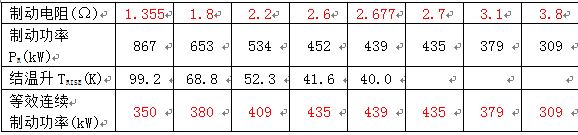 1.首先选取一电阻值,比如3Ω,然后根据此制动电阻值可以知道制动电流和制动功率,利用表二可以算出连续制动时制动晶体管的结温升TRISE。