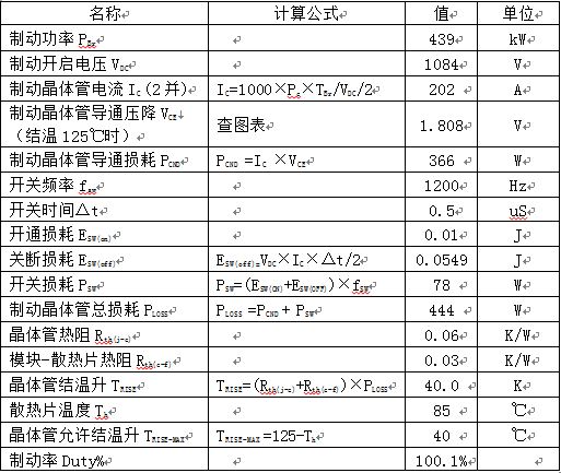 其中Rth(j-c) 为制动晶体管硅片到模块散热片的热阻,从附件一查到Rth(j-c) = 0.06 K/W